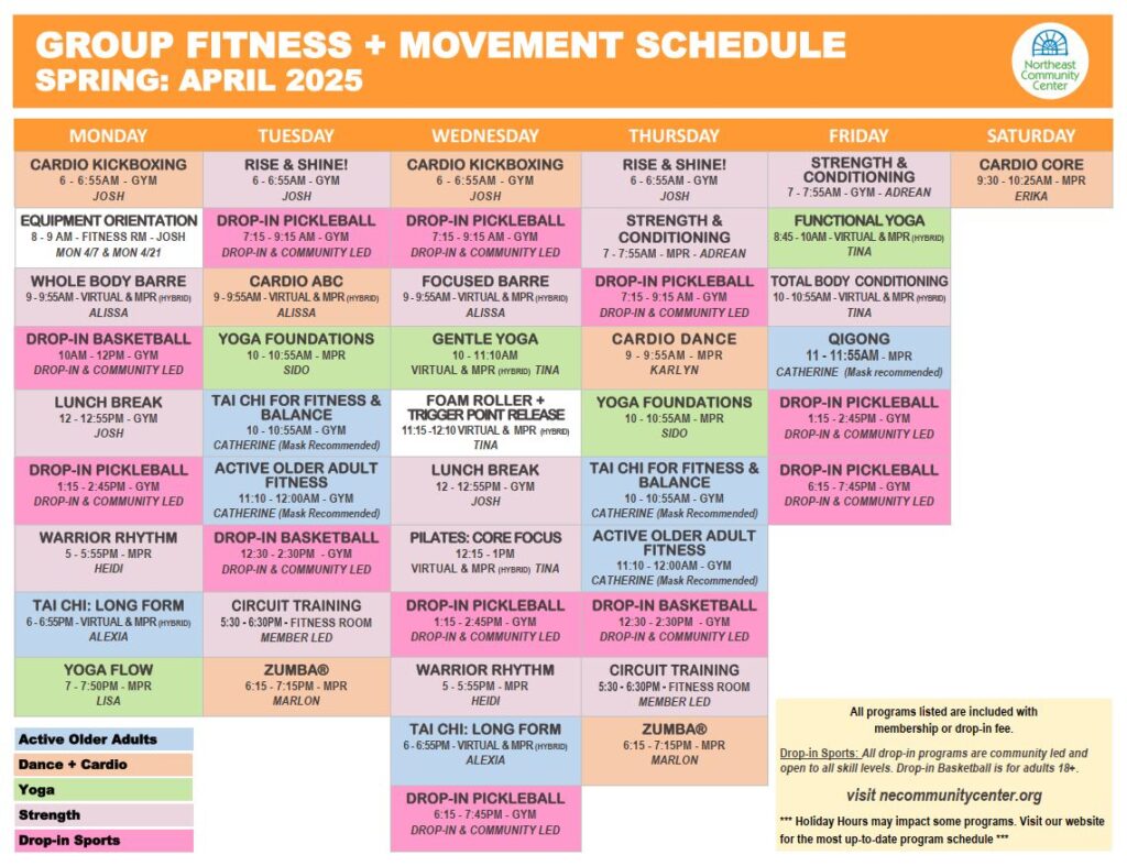 Virtual Classes: About 30 minutes before class, all virtual class registrants will receive a class link that is specific to that particular class, day & time. If you need help getting started, reach out to our Front Desk at (503) 284-3377, or by emailing frontdesk@necommunitycenter.org