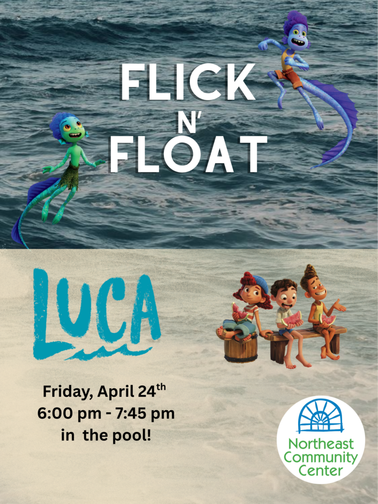 Everything is better with you around! Come swim with your friends at the Northeast Community Center for a fun-filled showing of “Luca” in our warm water pool!