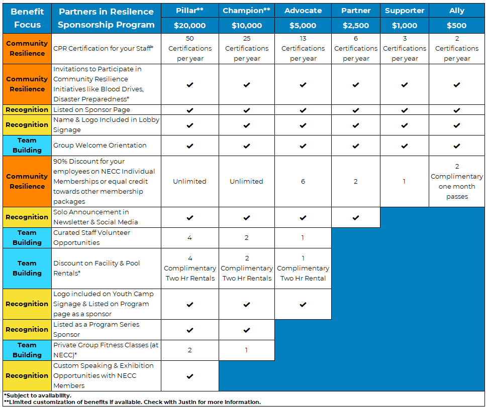 We are so excited to have you join us as a 2025 NECC Partner in Resilience! We offer several convenient options to sign-up and submit payment. Click on the links below or the orange buttons at the top of the page to learn more.