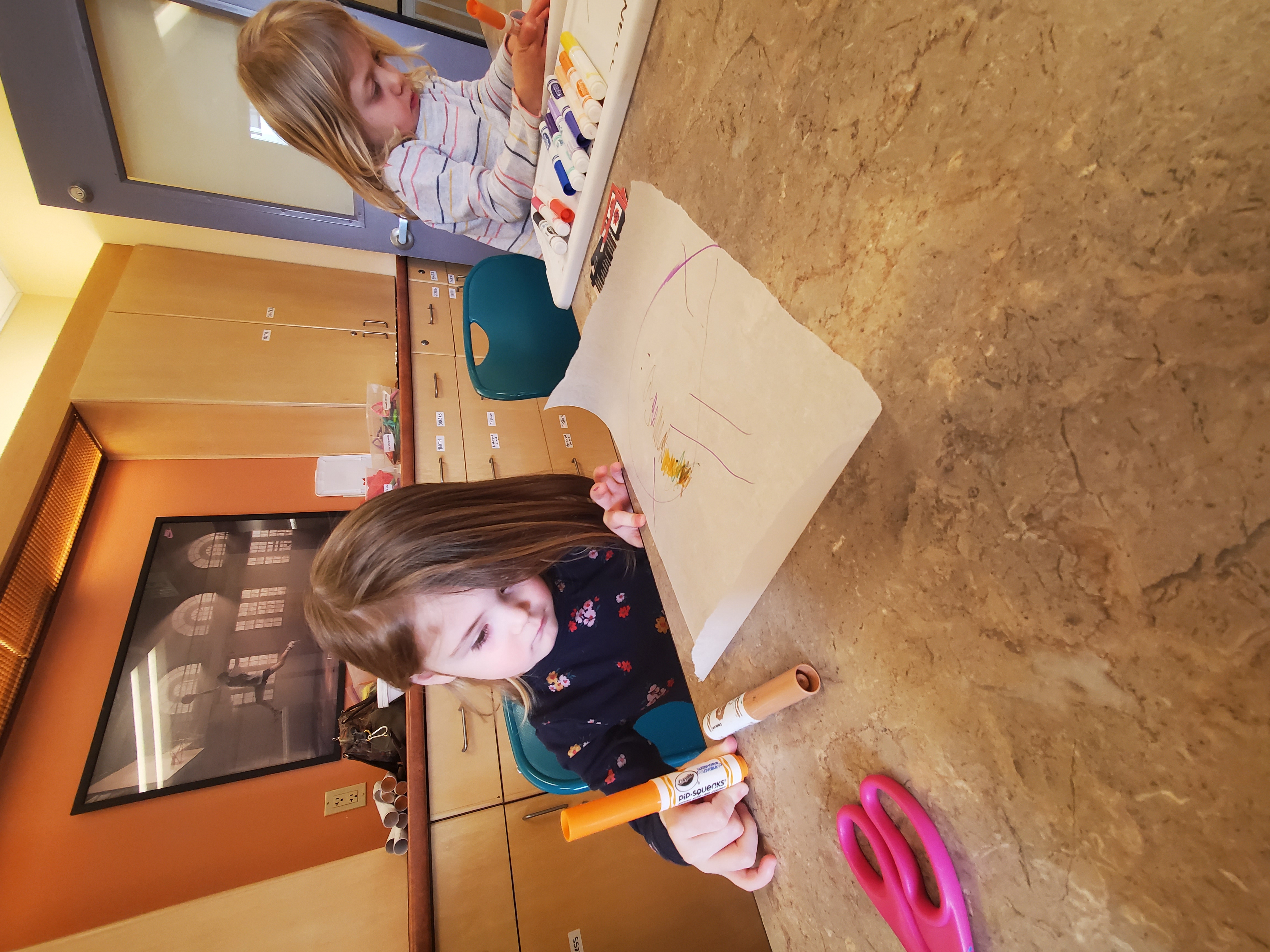 November 13, 2024 by Northeast Community Center Family-Art-Afternoons-2 kids drawing family portraits-Winter2023